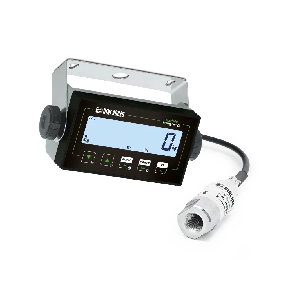 Wiegesystem zur Anwendung auf das Hydrauliksystem, einfach zu installieren durch ein T-Verbindungsstück. Ideal für Gewichtskontrollen, Kontrollen von Waren, die in das Lager ein- und ausgehen. Verhindert die Überladung des Gabelstaplers und der Regale.